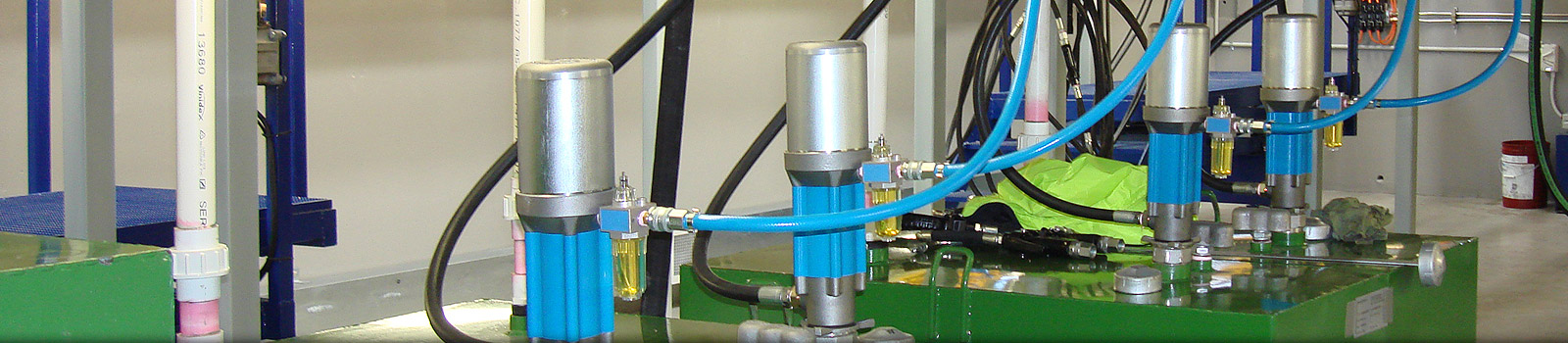 Oil and grease pumps connected to main lubrication supply tanks and high pressure lines