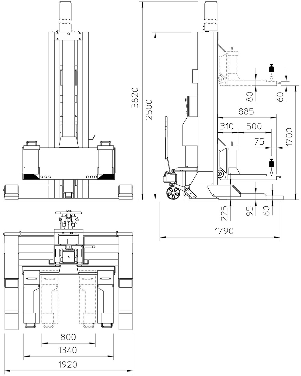 Column lift wheel fork showing back and wheels