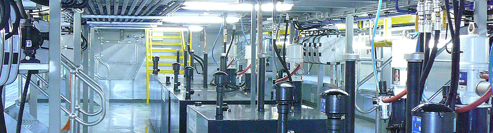 This workshop is equipped with Hartex Engineering’s Suspended ceiling truck service pit. Equipped with 2 pit bays 26m long, the large vacant area under the steel deck allows operators to accommodate oil tanks within the pit system, largely removing the need for a separate oil store. This particular pit has fixed work platforms, although height adjustable travelling platforms are usually the norm.
