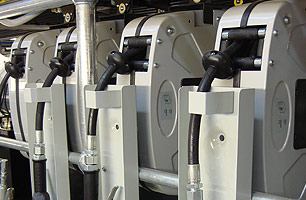 Enclosed lubrication hose reels for diff oil, grease and trans oil