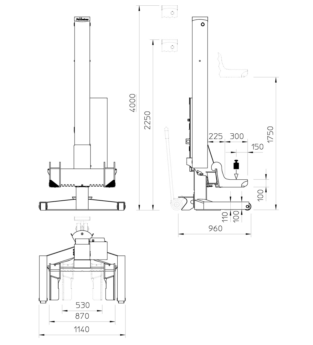 Wireless mobile column lift EHB1005 - Adustable wheel fork (closed)
